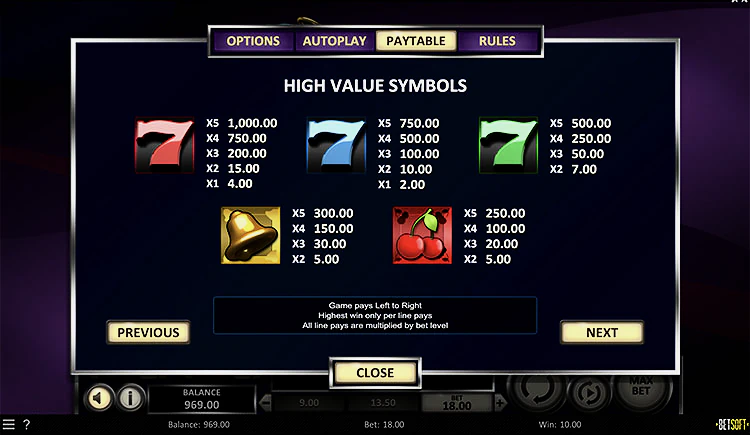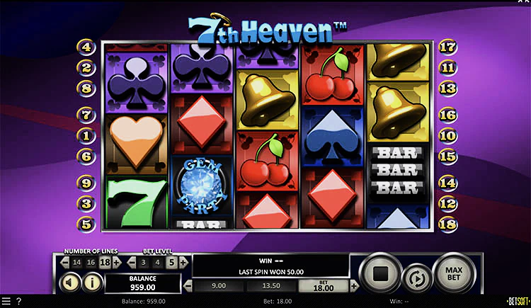 7th Heaven — это игровой автомат Betsoft с пятью барабанами и 18 линиями выплат, который наверняка заставит вас возвращаться снова и снова. Он впечатляет не меньше, чем любая игра, созданная этим разработчиком, и демонстрирует все их отличительное качество и внимание к деталям. Интерфейс для ставок хорошо продуман, и вскоре вы начнете играть как профессионал. Тематика слота очень простая, в аркадном стиле бесплатных слотов, и в нем нет сложных сюжетных линий или наворотов. Все дело в выпадении выигрышных комбинаций на барабанах, никаких дополнительных изысков не требуется.