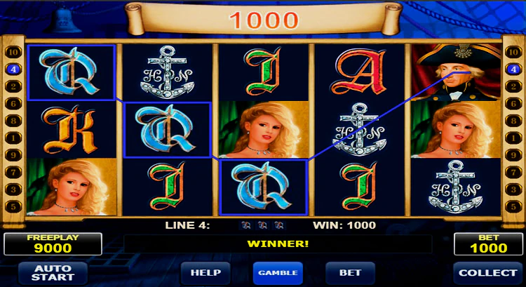Высокооплачиваемые символы этого слота: якорь, герб, дама и сам адмирал. Карточные символы туз, король, дама и валет предлагают более низкие выплаты.
