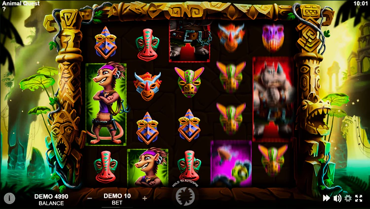 Animal Quest — игровой автомат с уровнем отдачи 96%. Он предлагает игрокам более 40 выигрышных линий, а также дополнительные бонусные символы. Бонуски увеличивают даже минимальную ставку. Также слот — один из немногих, кто может похвастаться современной графикой с анимированными персонажами. Во время обзора подробнее рассмотрим возможности аппарата.