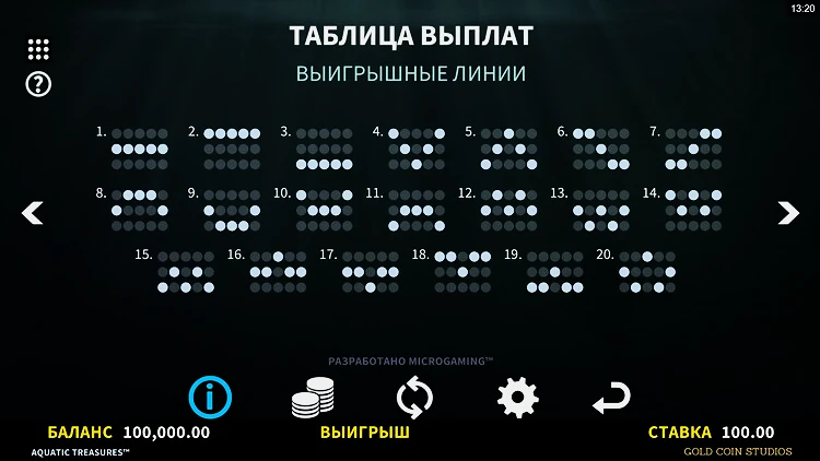 Здесь всего 10 линий выплат, но вы можете создавать выигрышные комбинации как справа налево, так и слева направо. Таблица выплат подстраивается под вашу ставку, показывая максимальные выплаты при минимальной ставке: