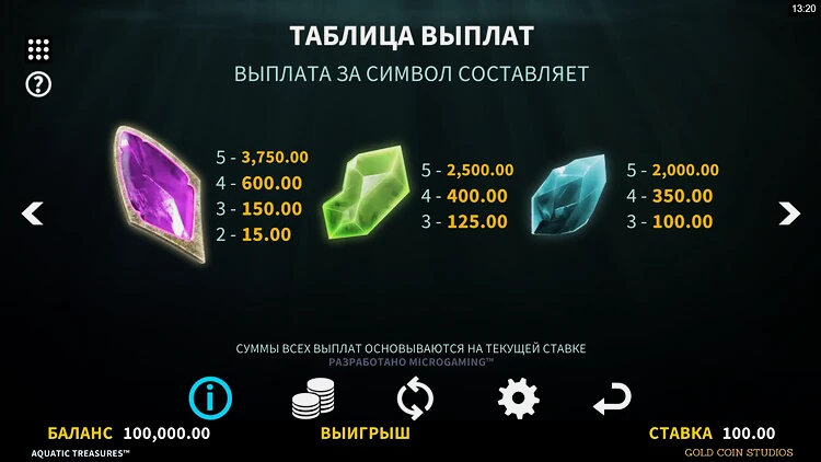 Размер монеты варьируется от 0,01 до 5. Количество монет — от 1 до 6. Это означает, что минимальная ставка составляет 0,10, а максимальная — 300,00.