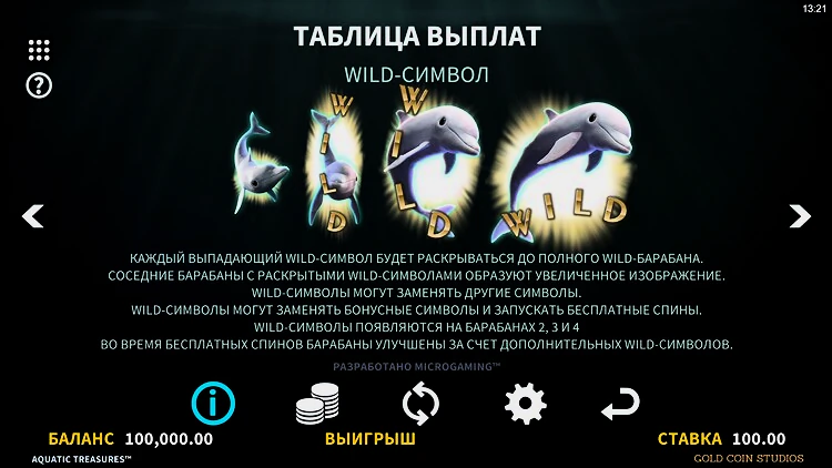 Если вы любите дельфинов, вы будете рады увидеть дельфиний вайлд. Еще лучше то, что это расширяющиеся вайлды. Каждый из них растет и заполняет весь барабан, а на соседних барабанах появляются более крупные изображения. Это означает, что шансы на совпадение символов увеличиваются.