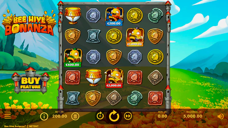 Игровой автомат Bee Hive Bonanza — это настольная и оптимизированная для мобильных устройств игра для казино от NetEnt. Сетка ярких мультяшных символов расположена на холмистом ландшафте, а барабаны оформлены в средневековом стиле, в котором они окружены стенами замка.
