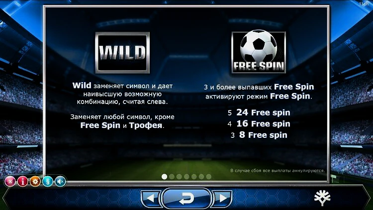 Кроме того, любой символ футболиста, выпавший в этом раунде, может превратиться в липкий Wild после гола. Если игроку не удается забить гол, он действует как обычный символ.