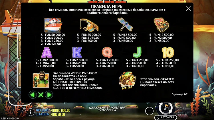- Рыбак является диким вайлдом, заменяющим все остальные символы, но только во время бесплатных вращений.