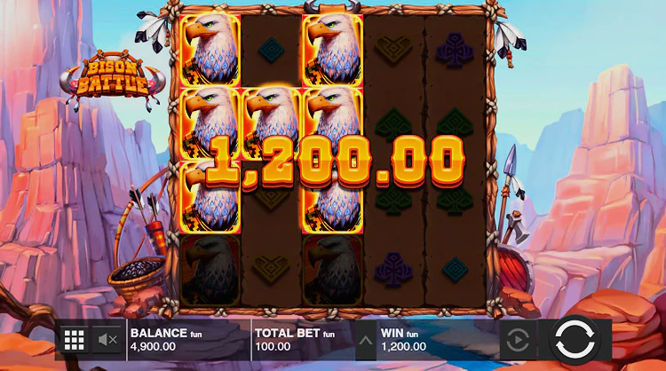 Bison Battle может похвастаться достойным RTP в 96,40%, при покупке бонусной игры он еще больше увеличивается — до 96,69%.