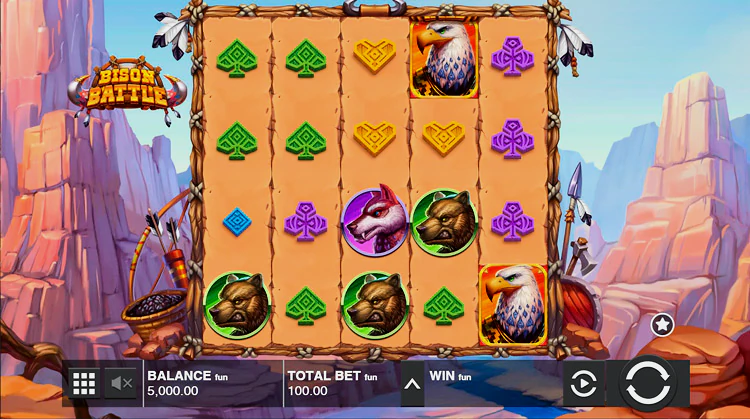Push Gaming удалось вдохнуть жизнь в игру благодаря качественной анимации и тщательно проработанным символам. Визуальные эффекты не только привлекательны, но и способствуют погружению в игру, превращая Bison Battle в увлекательное путешествие в самое сердце горного ландшафта.