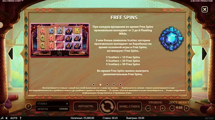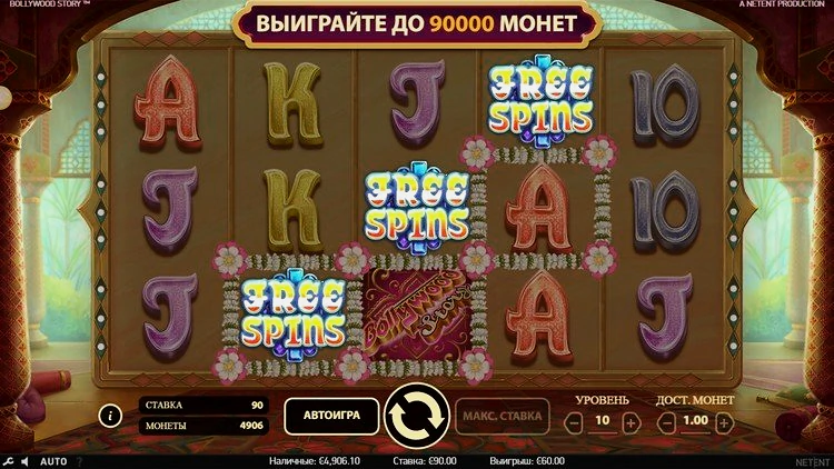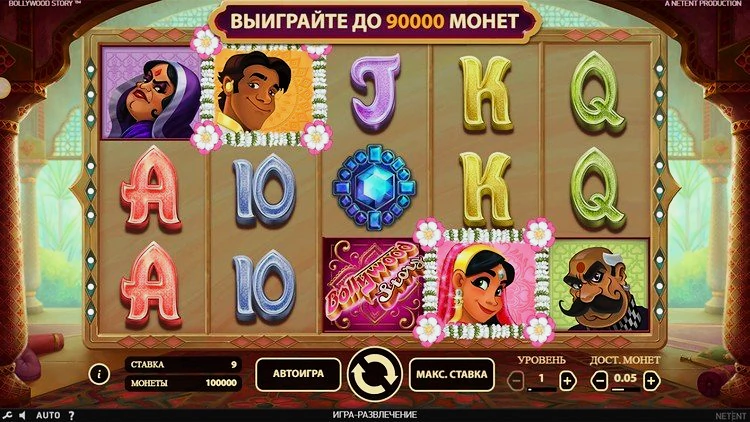 Bollywood Story — классический 9-барабанный онлайн-слот от NetEnt с потрясающей, яркой цветовой гаммой. Игра предлагает игрокам множество шансов выиграть по-крупному благодаря щедрому бонусному раунду, в котором вы можете заработать до 30 бесплатных вращений.