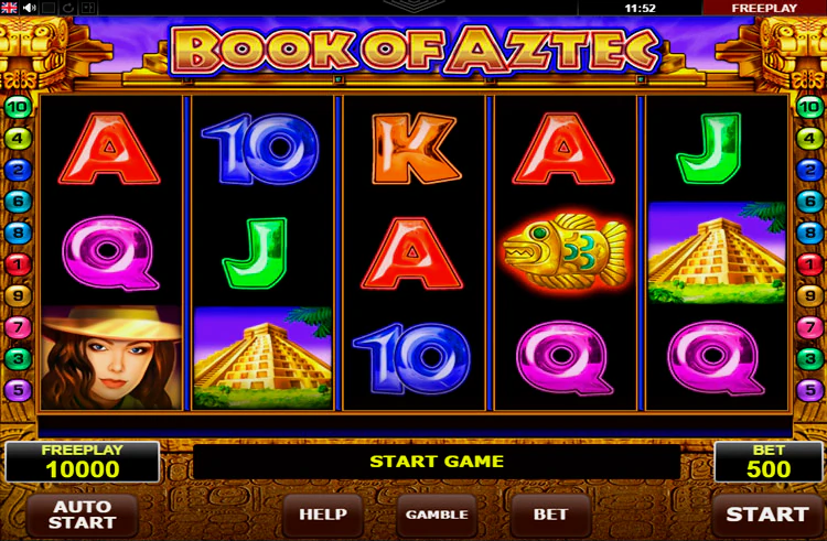 Book of Aztec — популярный игровой аппарат от известного провайдера Amatic, выполненный в тематике, вдохновленной цивилизацией древними ацтеками. Игра имеет стандартный формат игрового поля 5х3, 3 и 10 фиксированными линиями. Главным символом является Книга, которая запускает серию из 10 бесплатных вращений при появлении как минимум 3-х таких символов. Кроме того, есть дикий символ, который заменяет другие изображения для формирования выигрышных комбинаций.