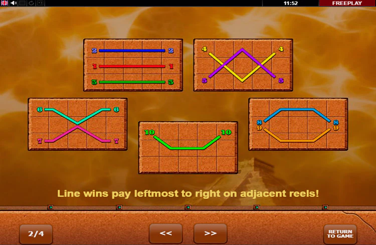 Символы, связанные с темой древних ацтеков, являются высокооплачиваемыми символами в игре. Самая выгодная комбинация — 5 исследователей, за которую полагается 5.000 монет. В игре также присутствуют более доступные символы в виде классических карточных номиналов A, K, Q, J и 10. Минимальный выигрыш, применимый к комбинациям из трех символов дамы, валета или десятки, составляет 5 монет.