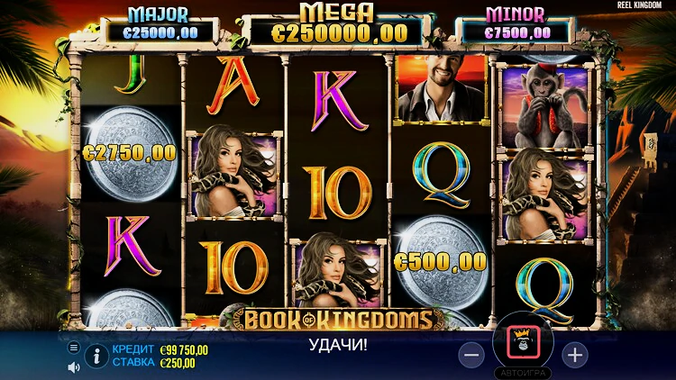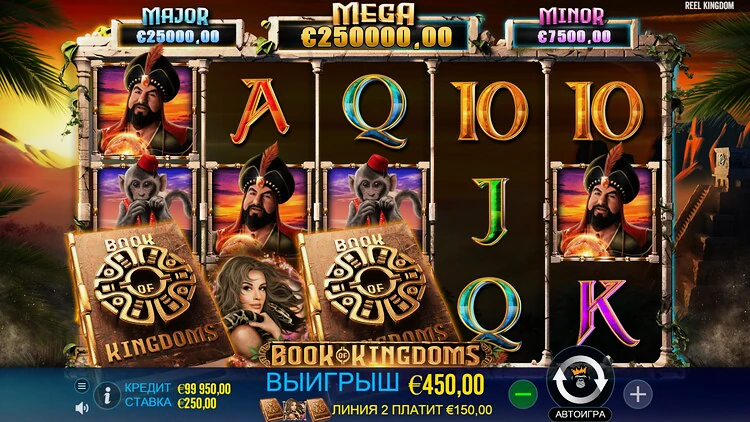 Book of Kingdoms идеальный выбор для любителей приключений, позволит насладиться игровым процессом и получить щедрые выигрыши, ведь автомат помимо интересного сценария еще и щедрый на деньги, в нем можно выиграть до пяти тысяч монет валюты казино.