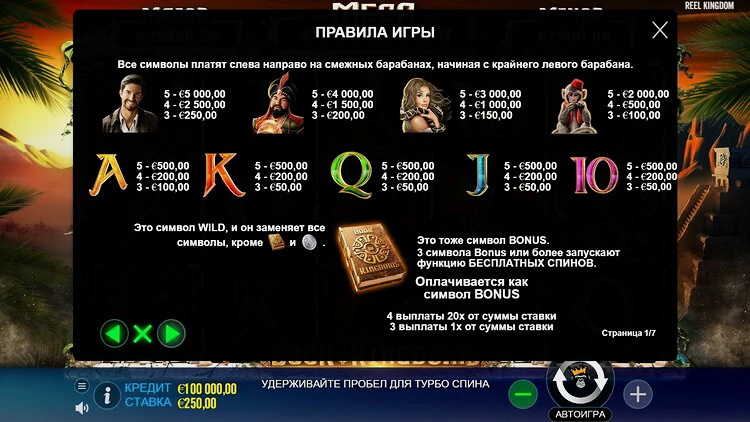 Видеослот предлагает окунуться в захватывающее приключение и рвануть на поиски сокровищ. Слот от Pragmatic Play стилизован под экспедицию ученого в поисках баснословного богатства. На пяти барабанах и трех рядах символов игроков ждут яркие прорисованные вайлды, дополнительные вращения и повторные спины.