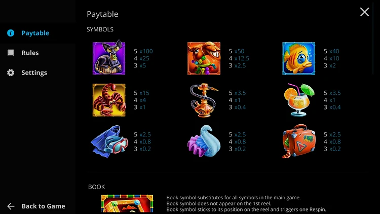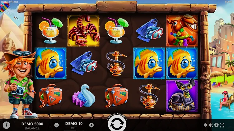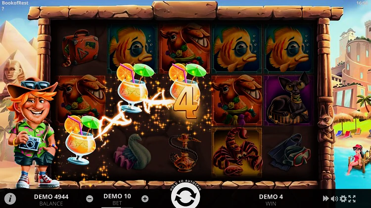 Слот онлайн Book Of Rest бесплатно визуально привлекательный вариант игры на самые разные темы, поэтому его практически невозможно отнести к одной категории. В нем присутствуют элементы игр о путешествиях, праздниках и играх на египетскую тематику.