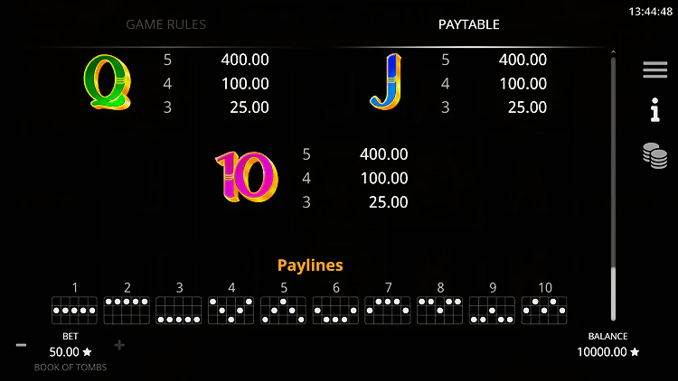RTP в Book of Tombs ниже среднего 95,42% при высокой волатильности. Чтобы получить представление о Book of Tombs и других быстрорастущих игровых автоматах с бесплатной игрой, рекомендуется попробовать их в демо-режиме, прежде чем вносить какие-либо реальные деньги.