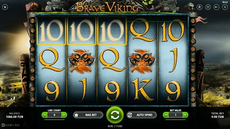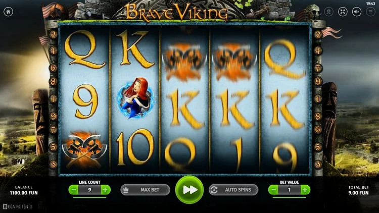 Brave Viking — это видеослот формата 5×3, разработанный популярной компанией BGaming. Он имеет 9 линий выплат и высокий RTP в 97,09%, предлагая при этом среднюю волатильность. В игре присутствуют вайлды, бесплатные вращения, скаттеры, заменители и бонусные символы.