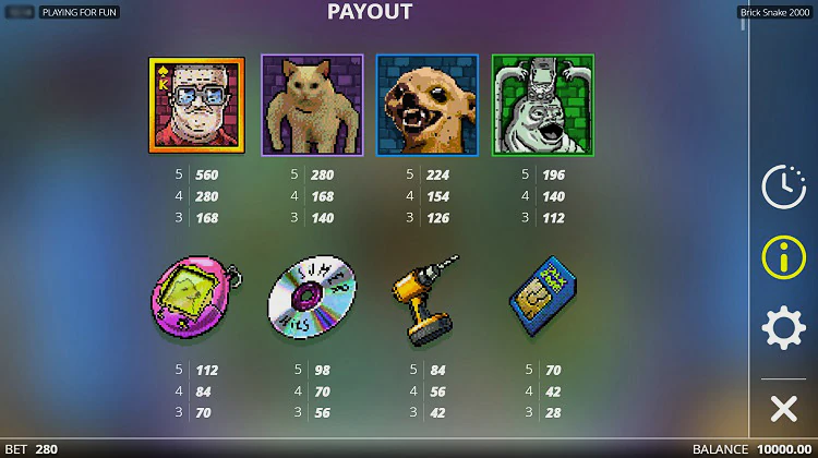Неожиданной новинкой от провайдера Nolimit City стал слот Brick Snake 2000. Студия раскрывает тему ностальгии по нулевым. В центре сюжета игра змейка, а также другие характерные символы того периода. Слот предлагает незамысловатые базовые вращения и несколько специальных функций. Тут есть механика фриспинов в виде игры «Змейка» и God Mode, который позволит оценить систему «все или ничего».