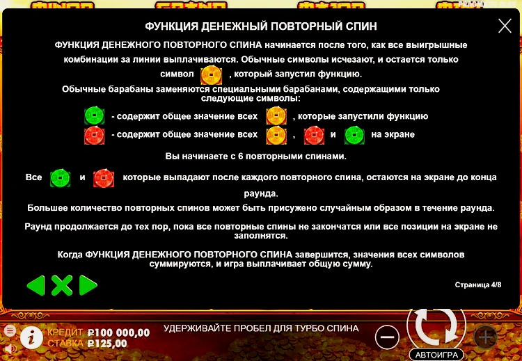 Когда вам выпадут три или более символа на соседних барабанах, вы получите выигрышную комбинацию. Главный доступный приз составляет 6x, поэтому выигрыши суммируются в течение ваших вращений.