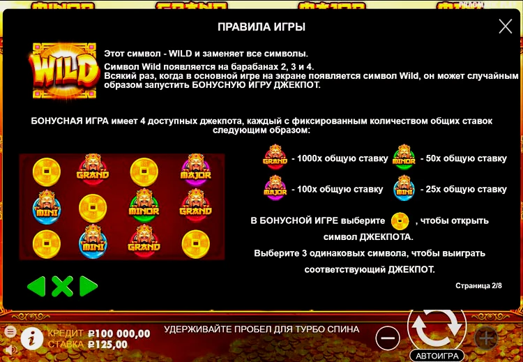 Также доступны четыре джекпота даже при минимальной ставке в Caishens Cash. Если вам удастся случайным образом запустить бонусный раунд, сможете получить один из следующих призов: