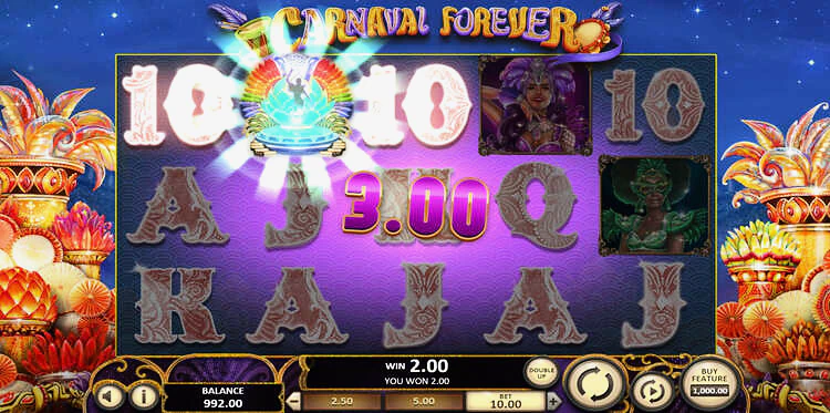 Если вы всегда мечтали побывать в Рио, слот Carnaval Forever — лучший вариант погрузиться в колорит самого красочного карнавала. Новинка от Betsoft определенно имеет бразильский ритм. Слот наполнен красочной графикой и музыкой, которая заставит вас подпрыгивать во время вращения. А если вы любите дополнительные возможности, то функция Buy Feature гарантирует, что вы никогда не останетесь в ожидании бесплатных спинов.