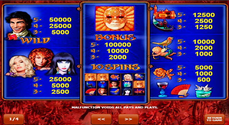 Casanova — это захватывающая игра от компании Amatic, которая перенесет вас прямиком в Венецию 18 века. Перевоплотитесь в Казанову, легендарного итальянского любовника, и получите заслуженное вознаграждение в виде крупных призов.