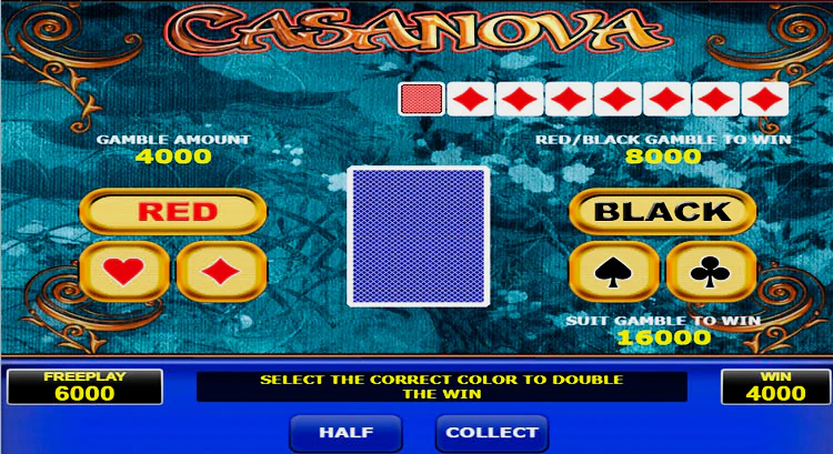Также в слоте предусмотрена риск-игра, которая дает возможность увеличить свой выигрыш. При правильном угадывании цвета закрытой карты, приз удваивается. Если угадана масть карты, выигрыш увеличивается в 4 раза.