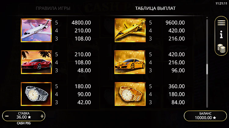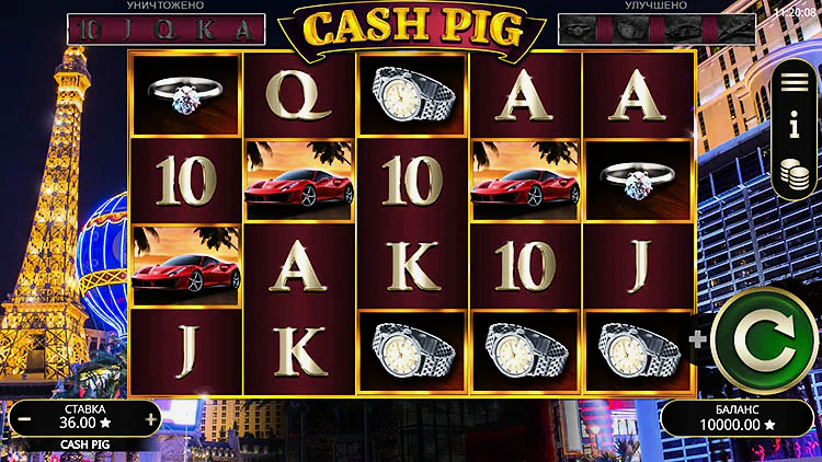 Готовы ли вы погнаться за крупными денежными призами? Новый игровой автомат Cash Pig от Booming Games предназначен для тех, кто ценит богатство и роскошь. Он погружает вас в экстравагантный образ жизни состоятельных людей, и если удача будет на вашей стороне, то вы можете стать членом этого эксклюзивного клуба. Элитные Ролексы, роскошные автомобили и ослепительные бриллиантовые кольца, украшающие барабаны -Cash Pig для тех, кто ищет эксклюзивных вознаграждений.