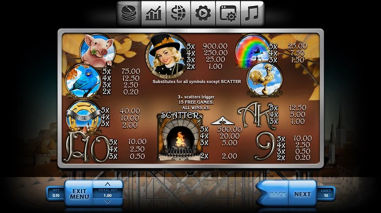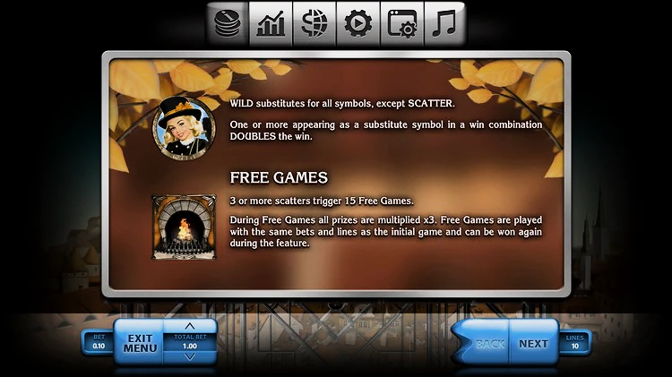 Значок камина — это скаттер-карта в игре. Нужно, чтобы на экране в демо-версии слота Chimney Sweep было как минимум два изображения, чтобы начать накапливать дополнительные монеты. Королевой игры является сама трубочистка: одетая в черное и с безупречной улыбкой. Пять выпадений на линии выплат — выпадет джек-пот. Она также заменит любой другой символ, кроме Скаттера.