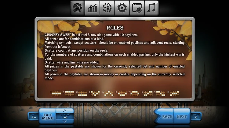 Игровой автомат Chimney Sweep от Endorphina погрузит в атмосферу беззаботности, где игроки с главным героем попрыгают по крышам домов.В классической видеоигре 5 барабанов в три ряда и 10 линий выплат. Из плюсов — щедрые символы Wild и Scatter, а также риск-игра, которая запускается после каждого выигрышного раунда. Рассмотрим все преимущества игры в обзоре.