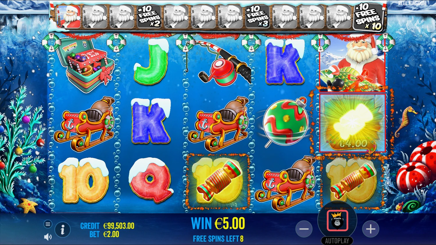- Санки Санта Клауса — увеличивает призовой множитель до х50.