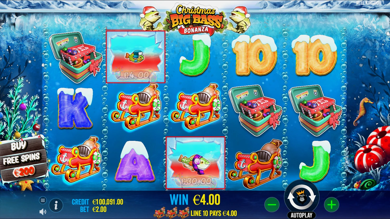 Игровой автомат Christmas Big Bass Bonanza от pragmatic play обладает высоким преимуществом над казино. RTP онлайн слота составляет 96,7%. Минимальная ставка здесь всего 20 центов. Максимальная достигает отметки в 250 долларов. Призовое комбо увеличивается до показателя 2100 максимум. Если вы доходите до заданного значения, игра останавливается, а вы получаете выплату.