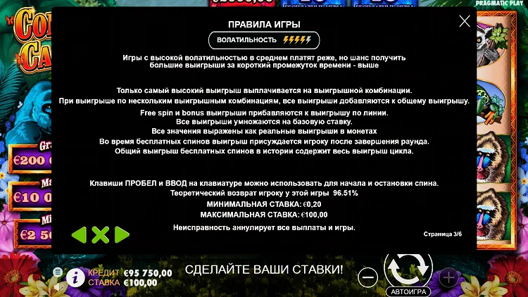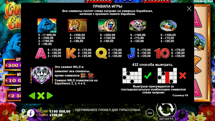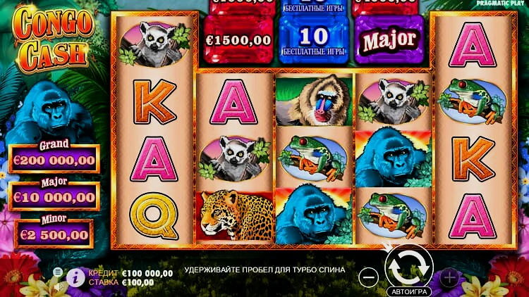 Главный приз в Congo Cash достигается, когда вы выигрываете два крупных джекпота в сочетании с большим джекпотом. Это приносит выплату в размере 2.200х, но также есть возможность поймать множитель 4.320х, когда экран заполняется символами гориллы. С учетом довольно частого появления Jewel Board с призовыми комбинациями, каждое вращение являет собой возможность получения солидных выплат.