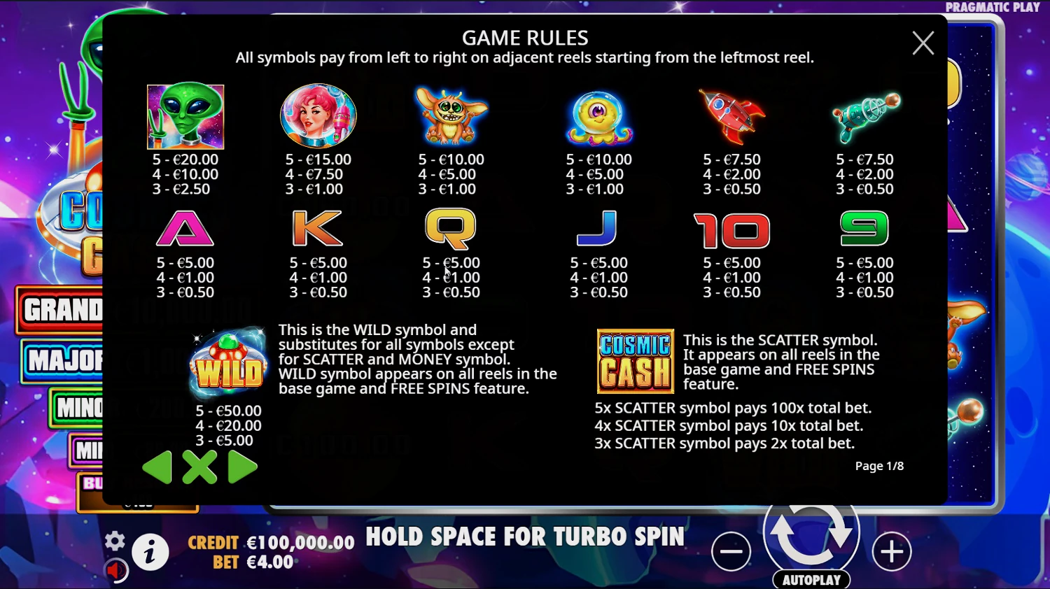 Специальные символы игрового автомата Cosmic Cash