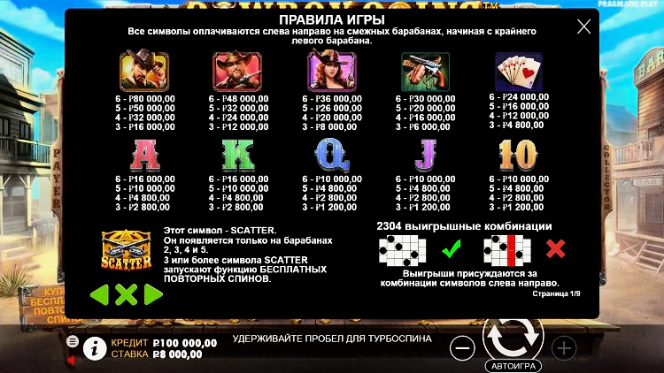На целых 2034 активных линиях в топовом слоте размещены яркие символы, связанные с Диким Западом. Очередной игровой автоматы бесплатно позволит погрузиться в атмосферу вестернов. Многочисленные бонусные функции, барабаны, которые меняют свои размеры и максимальный куш в х30 000 – то, что нужно для качественного приключения. Пользователям гарантированы положительные впечатления от слота, выпущенного провайдером Pragmatic Play.