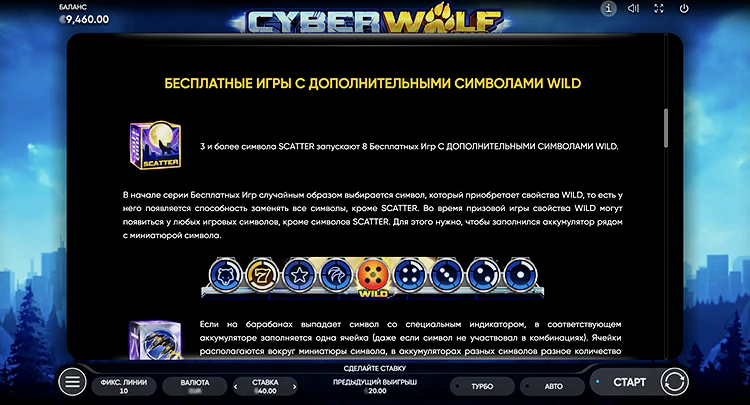| Воющий волк (Scatter) | — | 80 | 800 | 10 000 |
