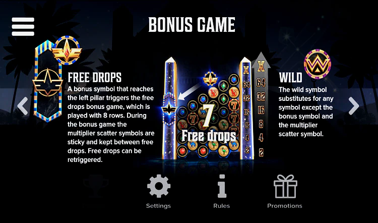 Если вам выпадет три или более одинаковых символа, вы получите выигрыш. Символы, участвовавшие в выигрыше, исчезают, и образуется лавина — но это не обычная лавина для игровых автоматов. Вместо того чтобы падать прямо на барабаны, символы скатываются в пустые пространства, придавая игре новую динамику. В конце лавины новые символы падают сверху экрана, и можно активировать до 8 рядов символов.