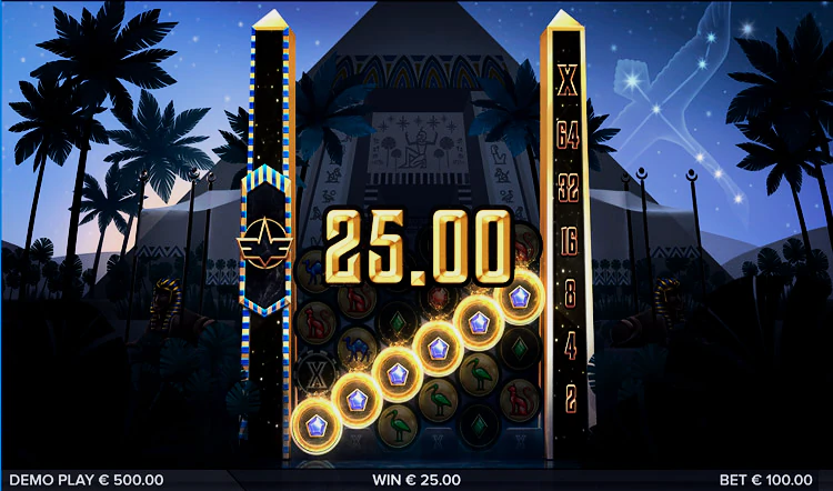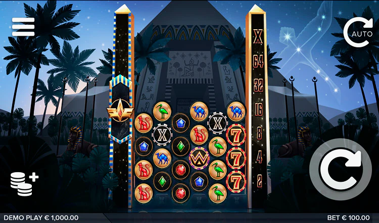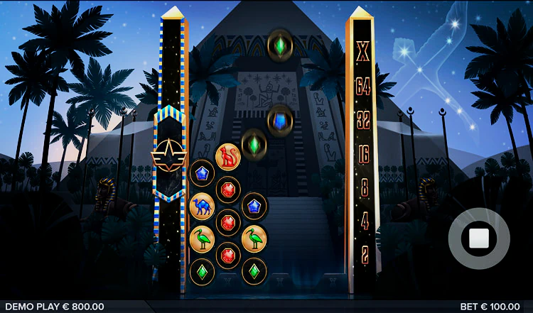 Действие игрового автомата разворачивается возле красивой, внушительной пирамиды, украшенной иероглифами. На заднем плане можно увидеть звездное небо с созвездием Cygnus. Это приятное сочетание тем, которое действительно предлагает игроку что-то новое.