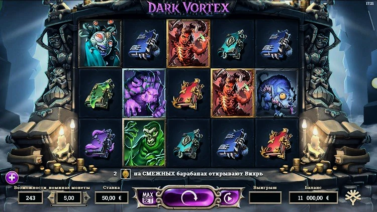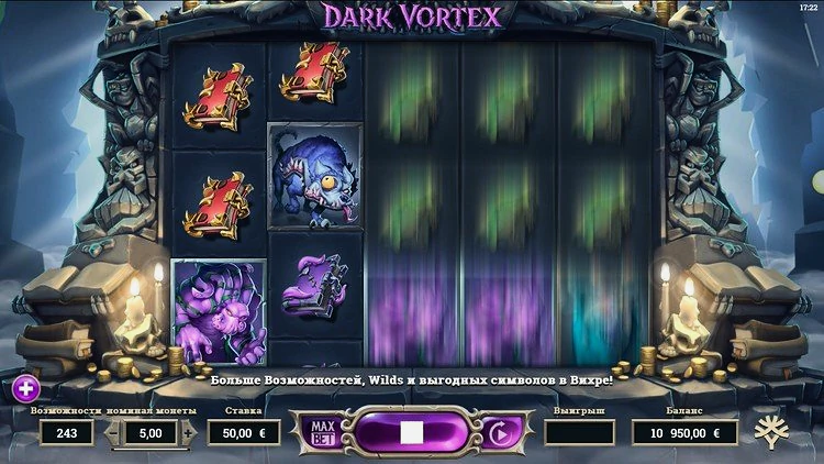 Dark Vortex имеет две специальные функции — Vortex Reels и Vortex Free Spins.