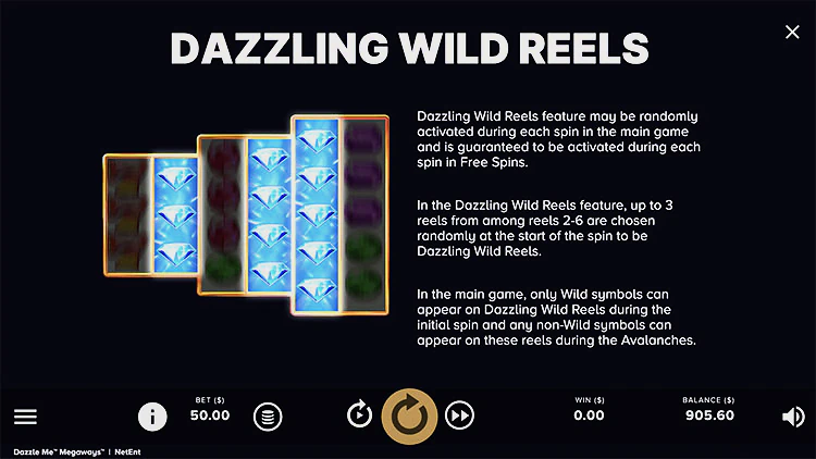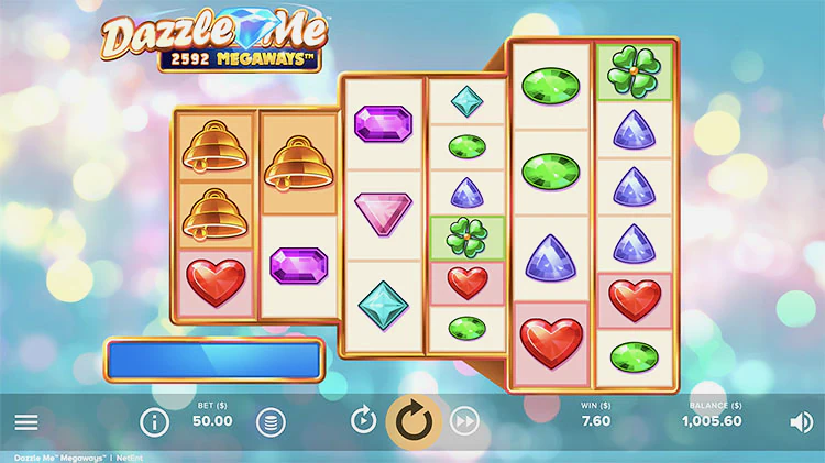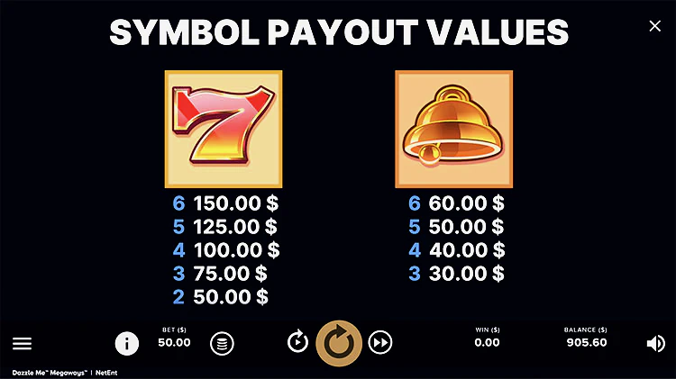 Благодаря зауженному дизайну игрового автомата Dazzle Me Megaways предлагает игрокам 99 225 способов выиграть. На каждом барабане может быть от 2 до 9 символов, и при выпадении выигрыша все выигрышные символы исчезают, их место могут занять новые. Эта лавинообразная игра продолжается до тех пор, пока вы продолжаете получать выигрыши подряд.