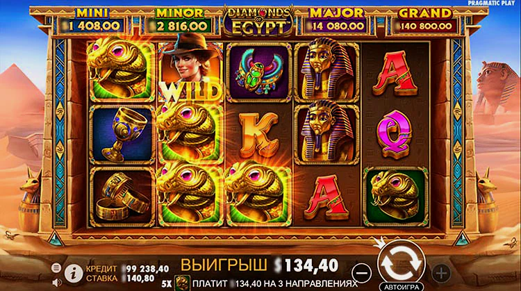 Diamonds of Egypt — игровой автомат онлайн производства Pragmatic Play. Он предлагает тему египетских сокровищ, высокую волатильность и 243 способа выиграть в пятибарабанной игре сетка. Его RTP составляет 96,49%, а бонусные функции включают бесплатные вращения и четыре игровых джекпота.