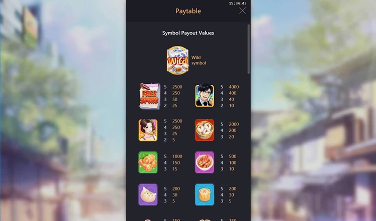 Необычно для игрового автомата с минимальной ставкой Dim Sum Mania, что таблица выплат предлагает несколько ценных призов. Выплаты рассчитываются путем выпадения одинаковых символов на соседних барабанах, при этом выплата за выигрышный символ умножается на количество выигрышных способов.
