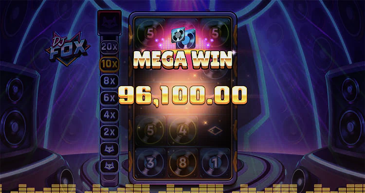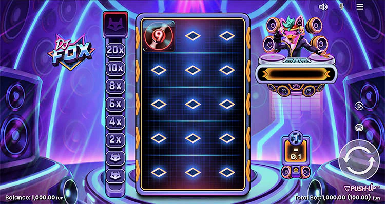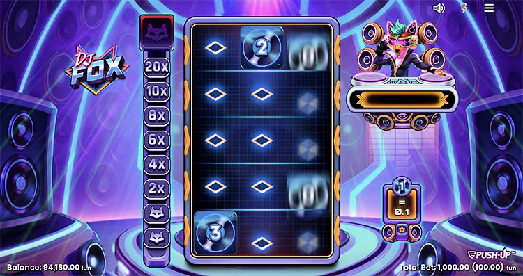 DJ Fox от Push Gaming — это дисперсивный игровой автомат, предлагающий главный приз в размере 10 000x от суммы ставки. В игре есть респины и счетчик множителей, который может увеличить ваши выигрыши до 20 раз. DJ Fox пришел к нам из Push Gaming с уникальной функцией отжимания, которую мы раньше видели только в «Щедром Джеке». Слот отличается упрощенным геймплеем и наличием кроссплатформенного соединения HTML5.