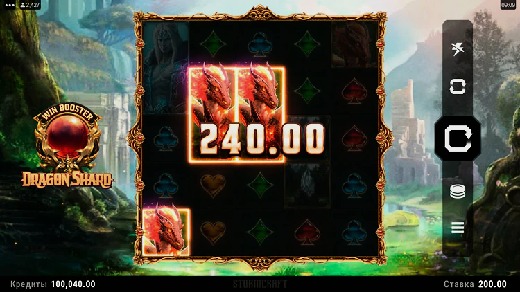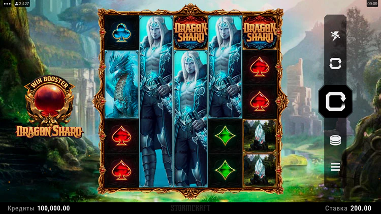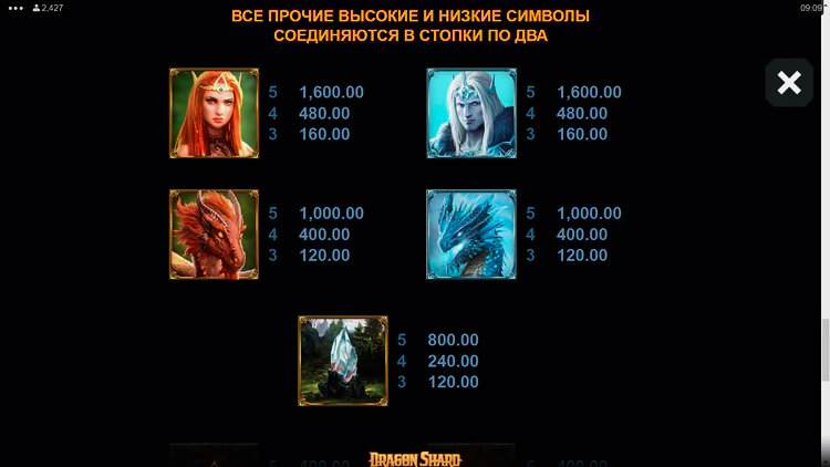 - Лого Dragon Shard (вайлд) —20-кратный выигрыш от ставки за пять идентичных символов.