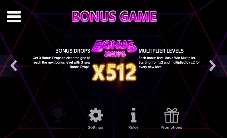 Любая оплачиваемая комбинация запускает функцию Avalanche: сразу после выплаты символы этой комбинации взрываются, верхние изображения падают вниз, а внизу остается пустота. Функция будет продолжаться до тех пор, пока будут образовываться призовые кластеры. Цель — полностью очистить игровое поле от символов. Если гэмблеру эту удалось, то активируется следующий бонус — Bonus Game — дополнительные множители, которые увеличиваются с каждым последующим спином.