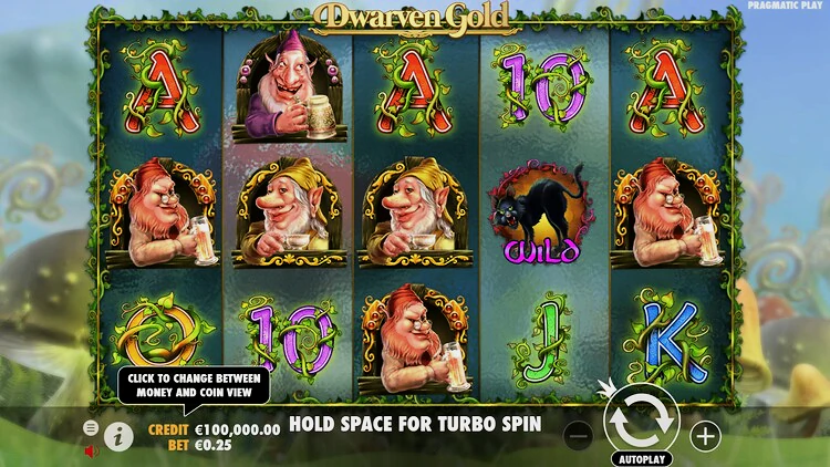 Игровой автомат Dwarven Gold был выпущен в 2016 году провайдером Pragmatic Play. В нем показан интересный мир веселых гномов, а символы оживают благодаря качественной анимации. На символах изображены гномы, наслаждающиеся напитками: пивом из больших кружек или чаем из небольших чашек. Игровой процесс разворачивается на фоне поляны — дома этих причудливых гномов.