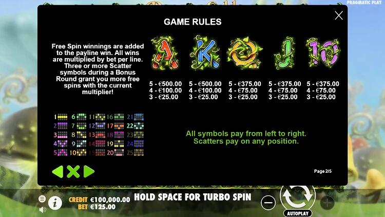 Напротив, символы с низкой стоимостью — это стандартные карточные номиналы: A, K, Q, J и 10. Эти символы предлагают различное вознаграждение за комбинации, а выигрыши составляют от 10 до 750 монет в зависимости от количества одинаковых символов на одной линии.