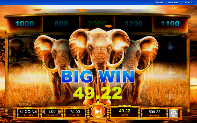 Антилопа — самый низкооплачиваемый символ, не считая стандартных карточных номиналов и оплачивается 75х от ставки за совпадение 5 символов и 10х за совпадение 3 символов. Игровой автомат Elephant King имеет процент отдачи игроку 96,02 и среднюю волатильность.