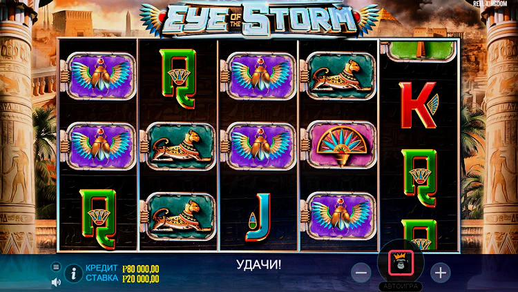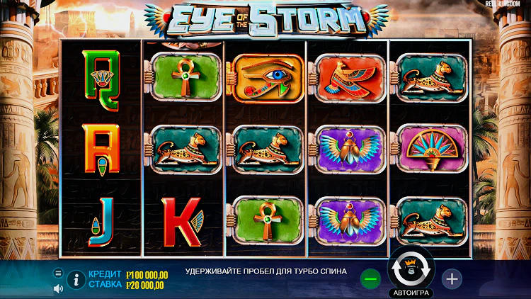 Для начала увлекательного приключения по Древнему Египту в слоте Eye of the Storm необходимо открыть тестовый бесплатный режим, или зарегистрировать аккаунт на сайте оператора онлайн-казино и наслаждаться игрой и выигрышами на реальные деньги.