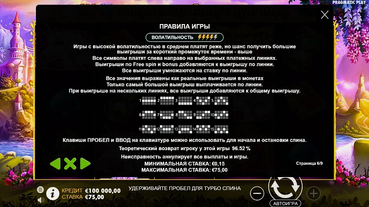 Этот слот позволит вам исследовать сказочный мир в поисках спрятанных сокровищ. На заднем плане изображена сказочная страна с красивыми замками и пейзажами. Командная панель расположена в нижней части дисплея, что позволяет игрокам с легкостью устанавливать желаемую ставку и регулировать настройки игры.