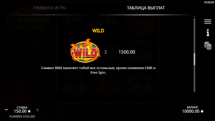 | Символ Wild | – | 1 500 | – | – | – | – | – | – |