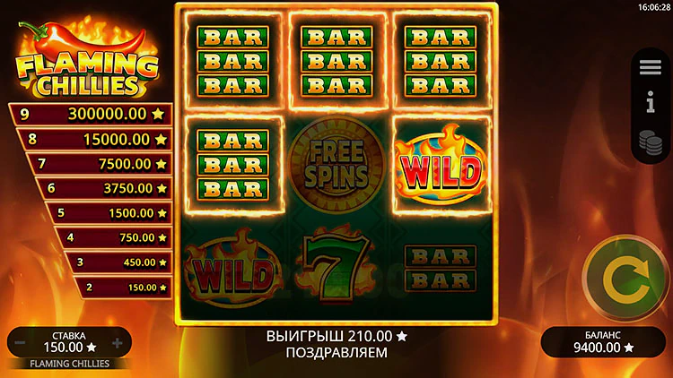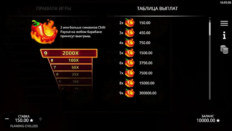 Во время игры накопление от двух до девяти символов чили приносит весомые выплаты, а вот выпадение девяти чили приносит игрокам тот самый джекпот от Flaming Chillies в размере 2.000х.